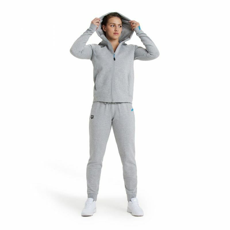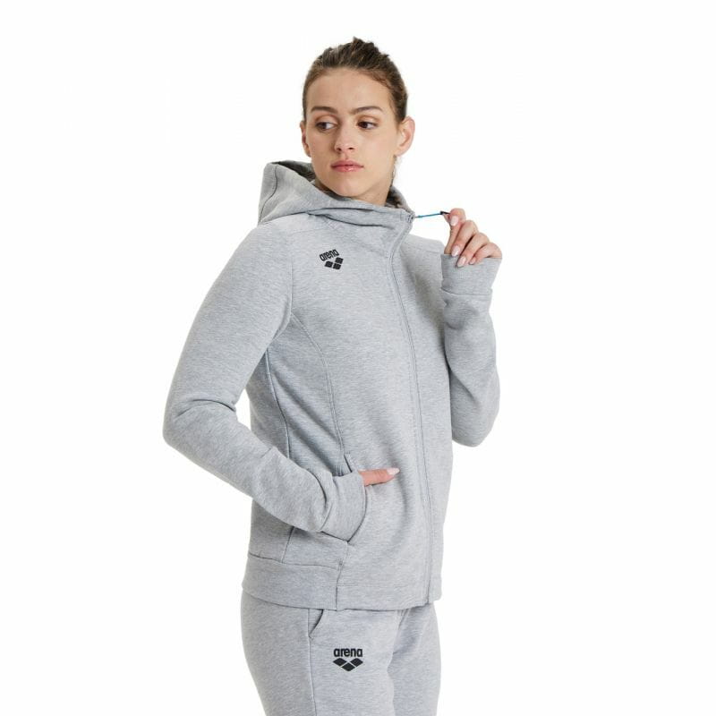 Arena Team Hooded Jacket to rozpinana sportowa bluza będąca częścią najnowszej kolekcji Arena Team Line inspirowanej mistrzyniami pływania. Rozpinana bluza z kapturem Arena Team Hooded jest idealna do uprawiania sportu i rekreacji. Wykonana ze szczotkowanego, elastycznego materiału jest przyjemnie miękka i zapewnia optymalną swobodę ruchów. Może być noszona w trakcie treningu lub na co dzień jako modny i sportowy element garderoby. Konturowe szwy nadają tej sportowej bluzie bardziej kobiecą sylwetkę.