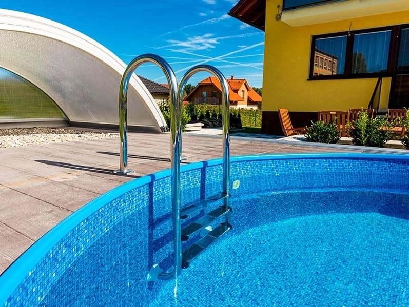 Basen został wykonany z antykorozyjnych stalowych ścian odpowiedniej grubości, a wkład foliowy jest idealnie do nich dopasowany. Taka kompozycja jest w stanie wytrzymać wiele lat użytkowania.