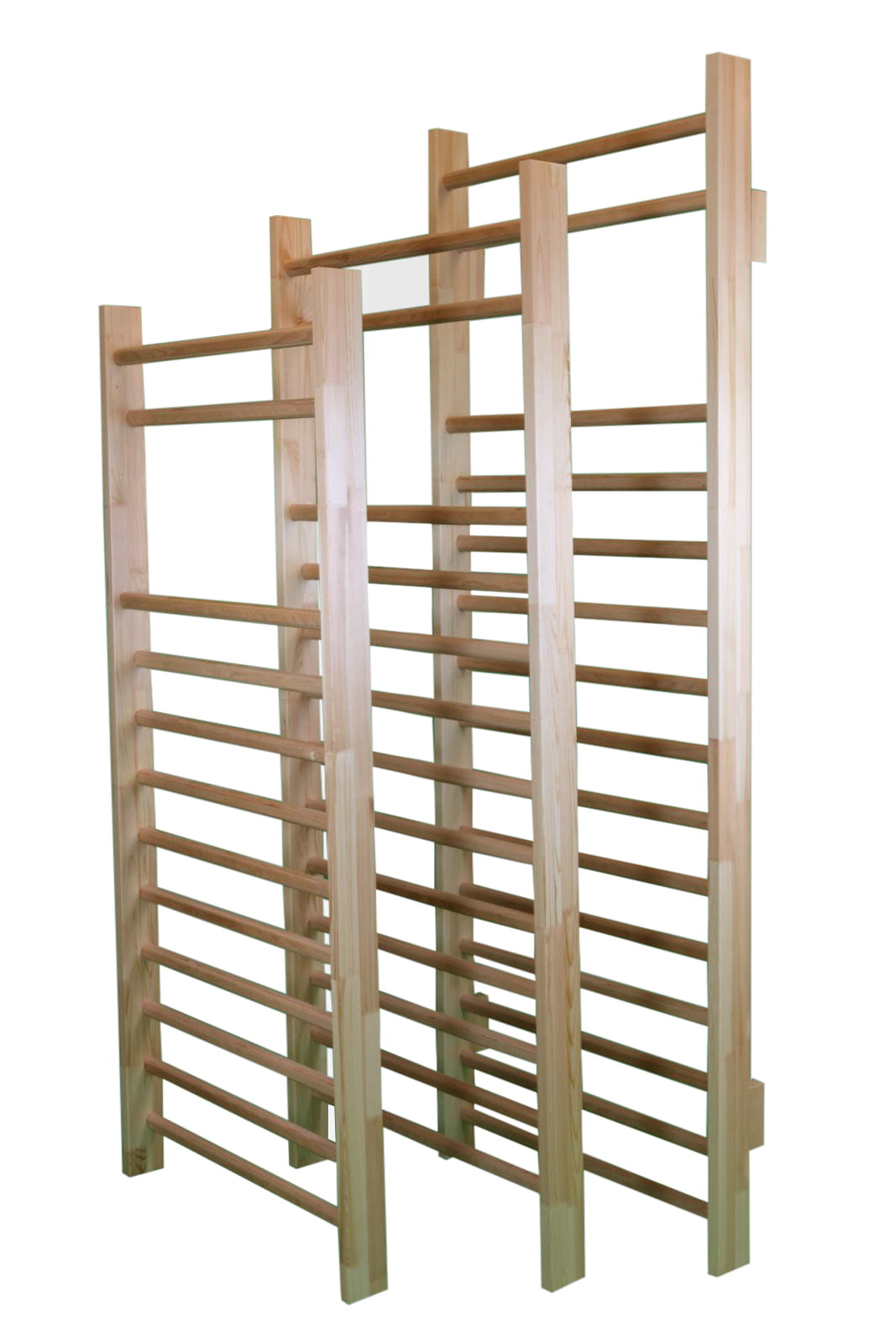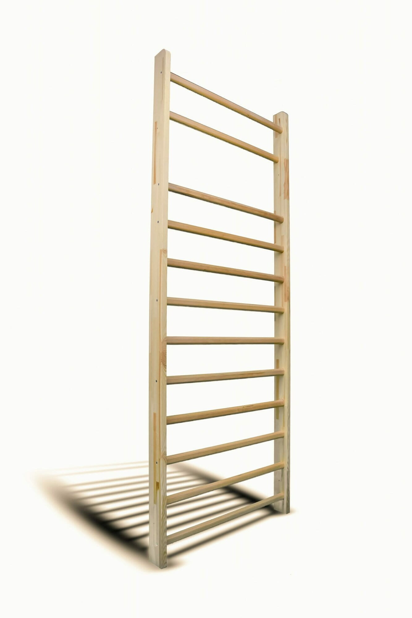 Drewniana drabinka gimnastyczna wykonana z wysokiej jakości drewna, co zapewnia dużą wytrzymałość na obciążenia przy różnego rodzaju aktywnościach fizycznych. Boki drabinek wykonane są z drewna iglastego (sosnowego) lakierowanego 3-krotnie, a szczeble ze specjalnej sklejki równoległo warstwowej 40x30 mm, dzięki czemu wytrzymują obciążenia nawet do 200 kg.