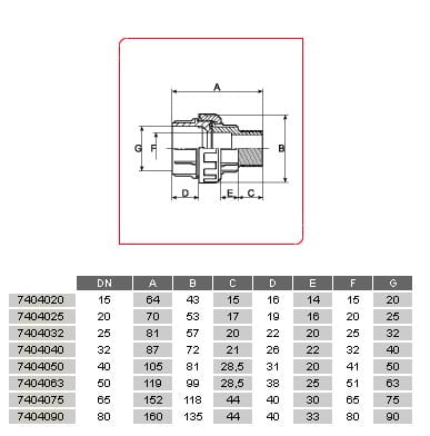 Dwuzłączka, klej - gwint zewnętrzny z o-ringiem z EPDM. Tabela rozmiarów na załączonym obrazie.
