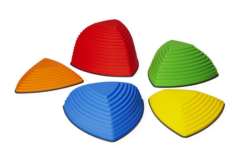 Zestaw "pagórków" o różnych wysokościach, które zachęcają dzieci do podejmowania aktywności mających na celu rozwijanie umiejętności oceny odległości czy poruszania się po przedmiotach o zróżnicowanych rozmiarach. Każdy element posiada przy podstawie gumowaną krawędź, która zapobiega ślizganiu się oraz chroni podłoże przed porysowaniem. Zestaw Gonge Hilltops dzięki swoim właściwościom doskonale sprawdzi się podczas zabawy i ćwiczeń, gwarantując wysoki poziom bezpieczeństwa zarówno dzieciom, jak i dorosłym.