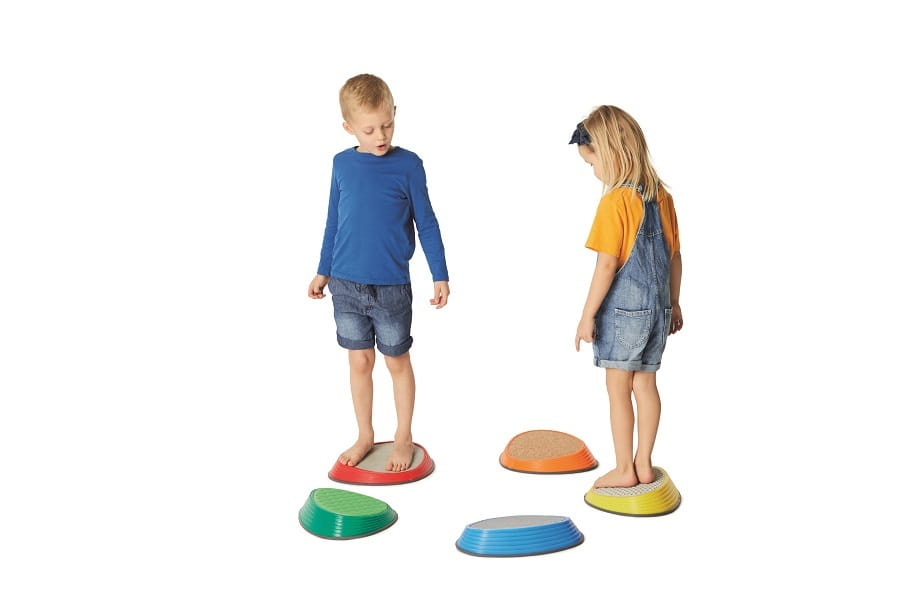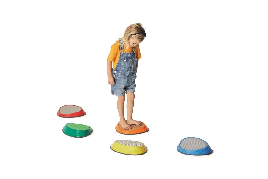 Zestaw pozwala w formie zabawowej rozwijać koordynację ruchową czy zdolności równoważne, jednocześnie stymulując stopy dziecka. Powierzchnia każdego elementu charakteryzuje się unikalną fakturą a w konsekwencji stopniem doznań dotykowych, dzięki czemu możliwe jest układanie różnego rodzaju konfiguracji ścieżek bodź wykorzystywanie konkretnego kamienia w celu pożądanego pobudzenia. Zadaniem osób ćwiczących jest np. skakanie z jednego kamienia na drugi bez dotykania podłogi. Każdy kamień posiada u podstawy gumowaną krawędź, co gwarantuje antypoślizgowość i dodatkowo zabezpiecza podłoże przed porysowaniem.