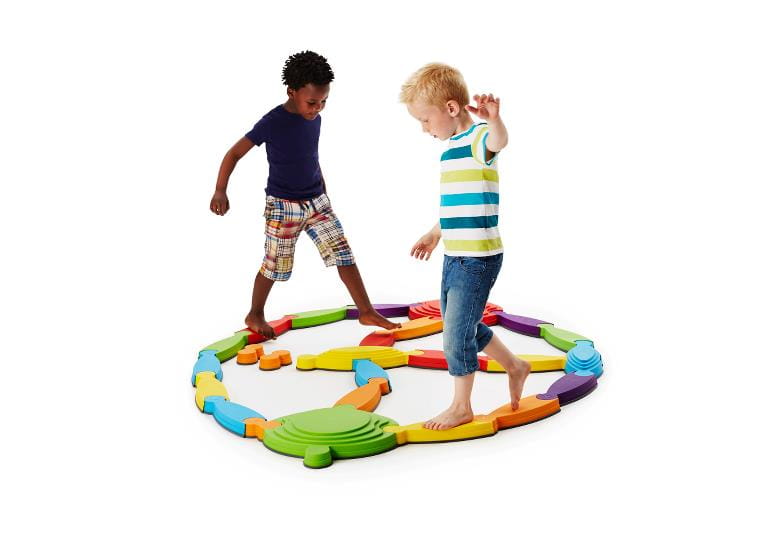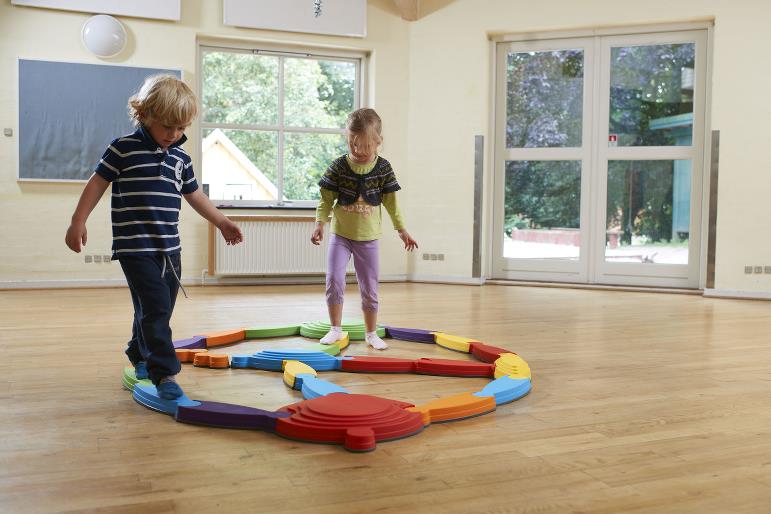 Kolorowa rzeka z wyspami i mostami to rozbudowana ścieżka sensoryczna, która dzięki swojej budowie oraz atrakcyjnej kolorystyce zachęca dzieci do podejmowania aktywności fizycznej poprzez zabawę. Przy pomocy zestawu, składającego się z 25 elementów, możliwe jest wykonanie różnego rodzaju ćwiczeń, treningu równowagi czy grupowych zabaw ruchowych. Tor równoważny został wykonany z wysokiej jakości plastiku wykończonego antypoślizgową gumą na krawędziach, co gwarantuje użytkownikom wysoki poziom komfortu i bezpieczeństwa. Kolorowa rzeka z wyspami i mostami stanowi zestaw, który dzięki swoim unikalnym właściwościom znajdzie zastosowanie zarówno w placówce edukacyjnej, jak i rehabilitacyjnej.