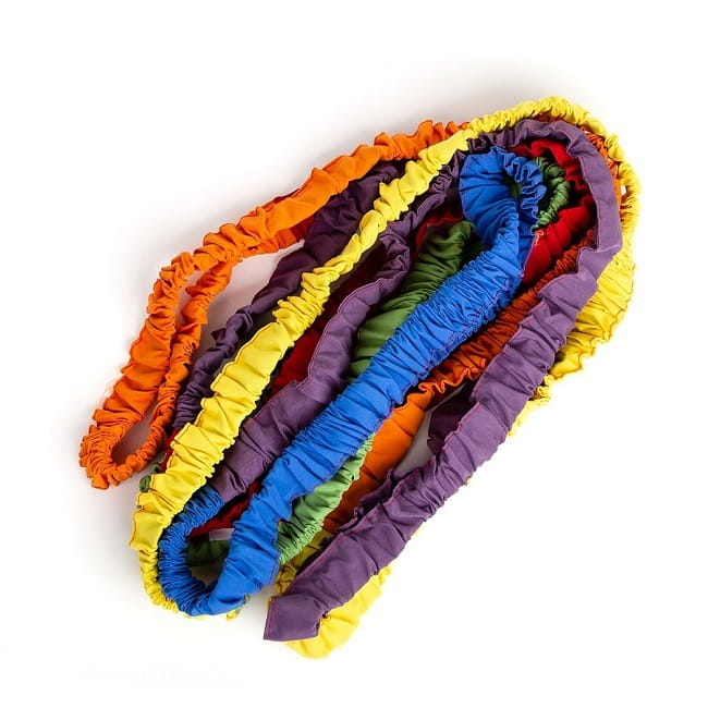 Guma sensoryczna w kolorach tęczy to idealne narzędzie do zabaw w grupie. Pomaga utworzyć koło podczas zajęć, polecana jest w szczególności nauczycielom, opiekunom oraz animatorom jako doskonała pomoc dydaktyczna, pedagogiczna i animacyjna. Dzieci uwielbiają zabawy z gumą sensoryczną! Sprawdzi się zarówno przy małych, jak i większych grupach dzieci.
