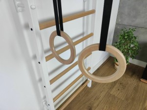 Drewniane obręcze idealnie łączą się z drabinkami drewnianymi wyposażonymi w drążki, tworząc miejsce do bezpiecznej zabawy połączonej z aktywnością fizyczną. Wykonane są z wysokiej jakości materiałów.
