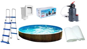 Jest to kompletny układ basenowy, który wystarczy połączyć w całość. Każdy z elementów basenu jest modularną częścią. W razie awarii jesteśmy w stanie odłączyć i naprawić bądź wymienić element na nowy. Istnieje także możliwość dokupienia pompy ciepła bądź folii solarnej, które pomogą ogrzać wodę w basenie.