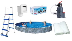 Jest to kompletny układ basenowy, który wystarczy połączyć w całość. Każdy z elementów basenu jest modularną częścią. W razie awarii jesteśmy w stanie odłączyć i naprawić bądź wymienić element na nowy. Istnieje także możliwość dokupienia pompy ciepła bądź folii solarnej, które pomogą ogrzać wodę w basenie.