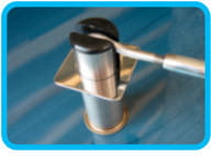 Gniazdo wykonane ze stali nierdzewnej AISI 316L mocowane w plaży niecki – stosowane do zaczepów lin torowych przy przelewach typu fińskiego lub z boku niecki do mocowania lin wyznaczających pole gry w piłkę wodną. Jest także nieodłącznym elementem zestawów falstartowych i nawrotowych w nieckach o płaskiej plaży. Gniazdo wyposażone jest w gumowy kołnierz uszczelniający. Dostępny w wersji o pochyleniu 4º dla plaży ze spadkiem.