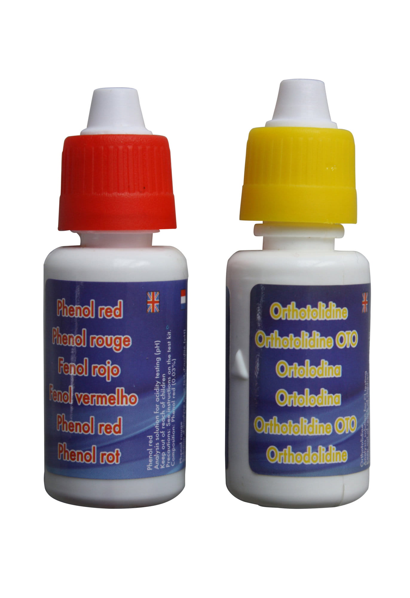 Zapasowe odczynniki do testera kropelkowego wody basenowej. Do badania poziomu wolnego chloru i odczynu pH wody