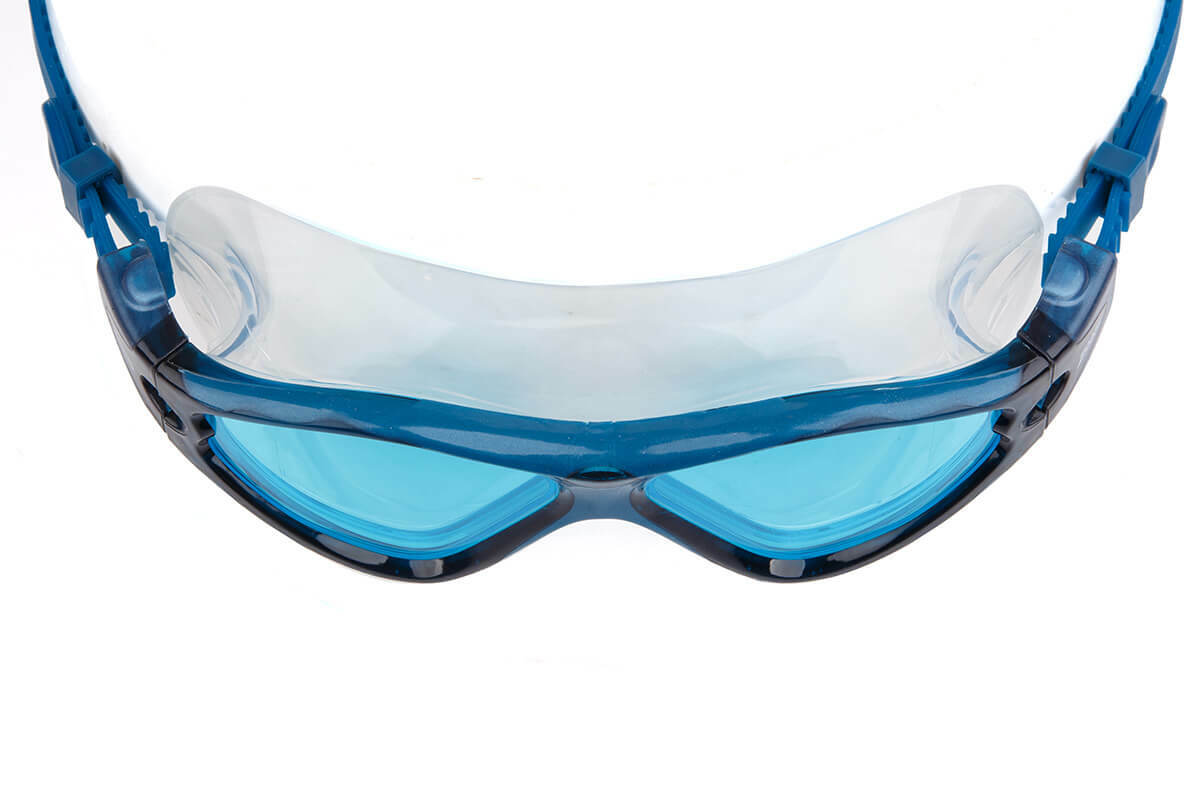 Zoggs Tri Vision wyposażona jest w technologię CLT™ Curved Lens Technology, która zapewnia 180-stopniowe pole widzenia peryferyjnego. Soczewki z powłoką anti-fog oraz filtrem UV gwarantują dobrą widoczność i ochronę oczu, a miękka silikonowa uszczelka i regulowany pasek zapewniają stabilne i indywidualne dopasowanie.
