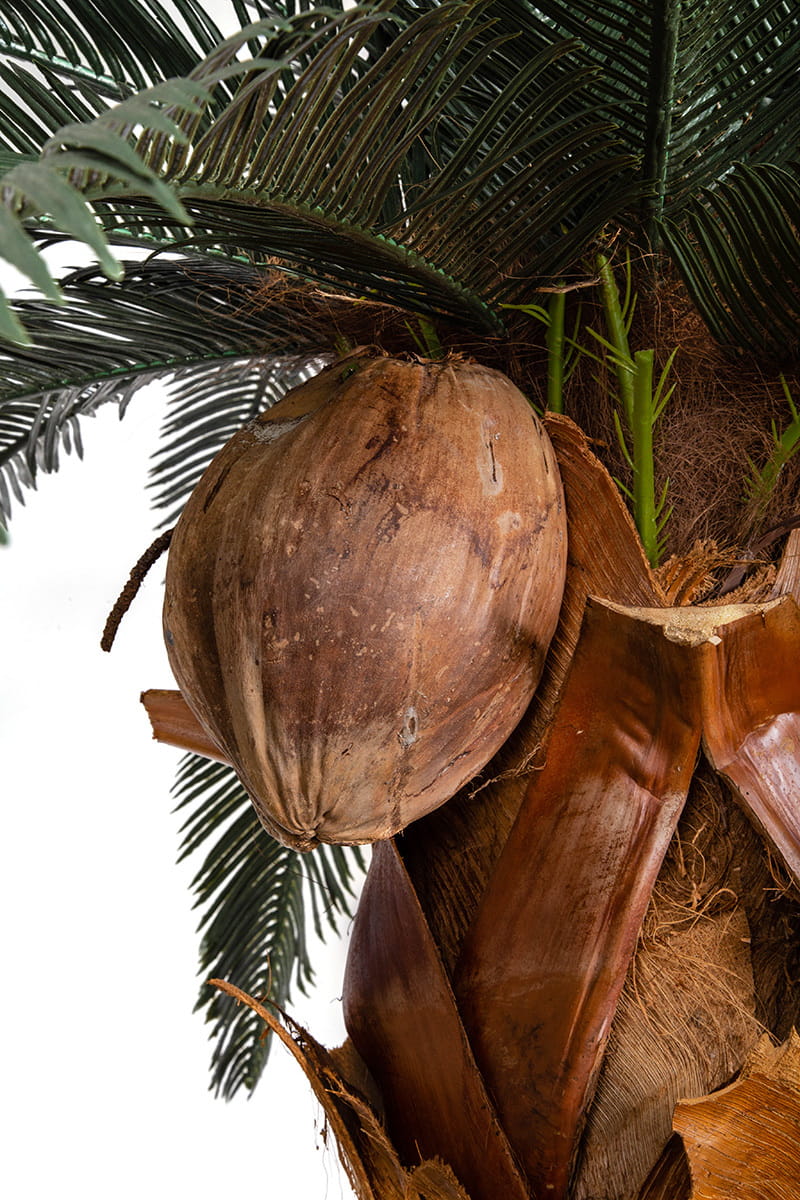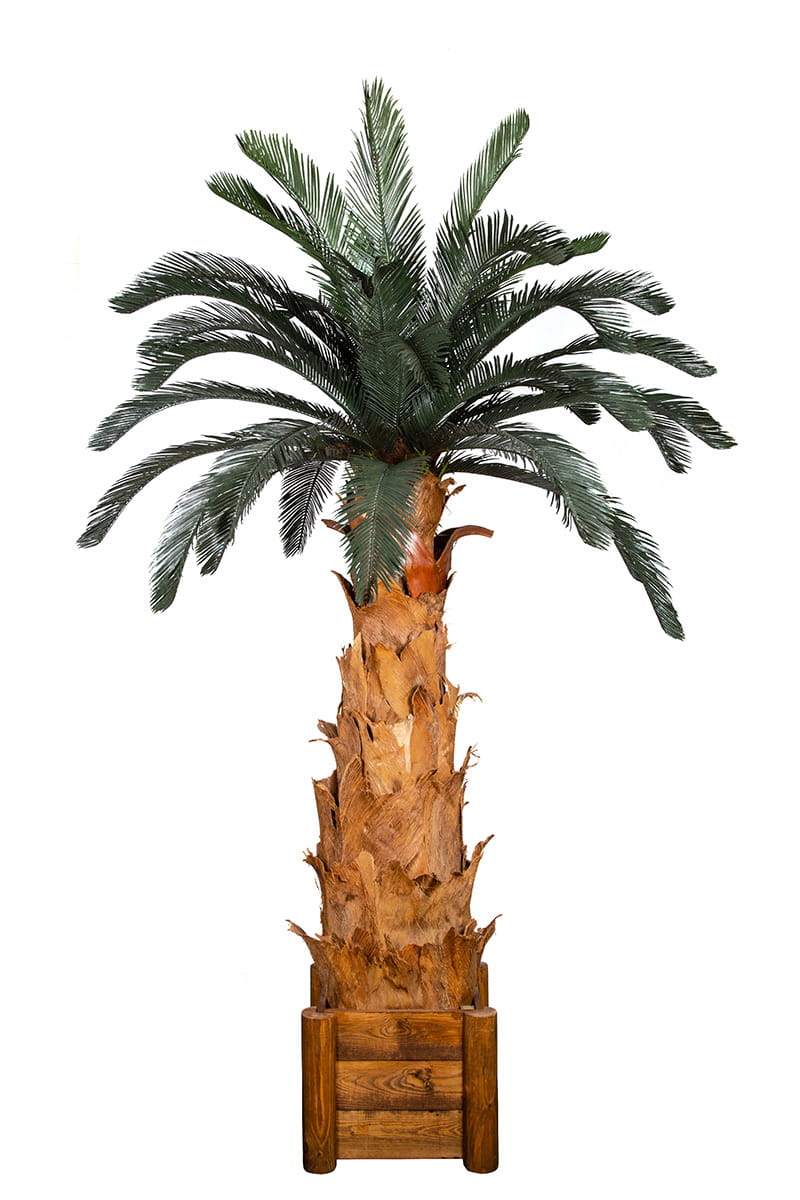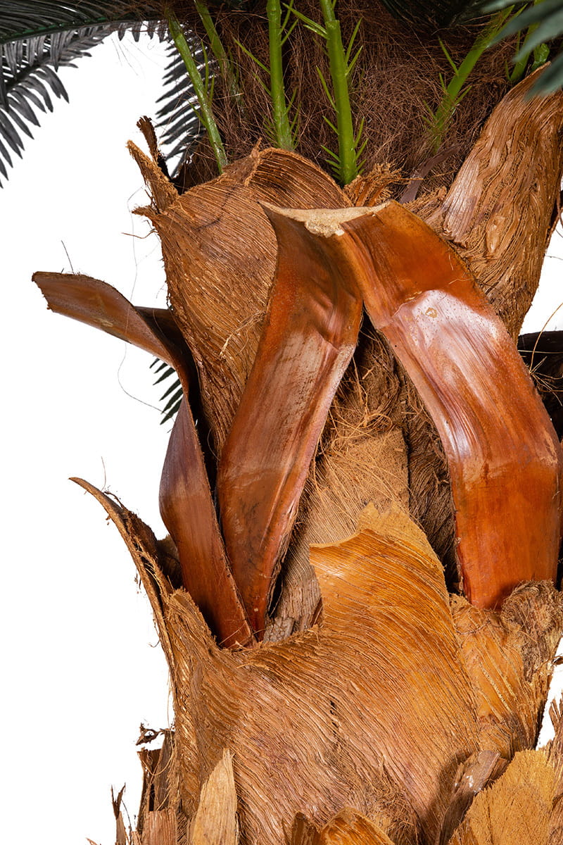 Model ten jest realistycznym odwzorowaniem egzotycznego drzewka i posiada pień pokryty grubą warstwą naturalnej kory palmowej. Sztuczne liście o długości 1 m są odporne na warunki atmosferyczne. Palmy są mrozoodporne, dlatego doskonale nadają się do zastosowania na zewnątrz. Drzewka dostarczane są wraz ze stabilną donicą.