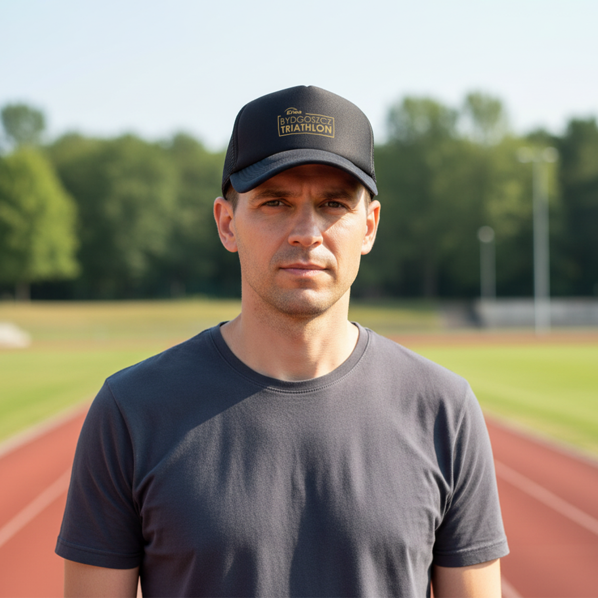 - Oficjalny Gadżet Eventu: Autentyczna czapka z logo prestiżowej imprezy Enea Bydgoszcz Triathlon.