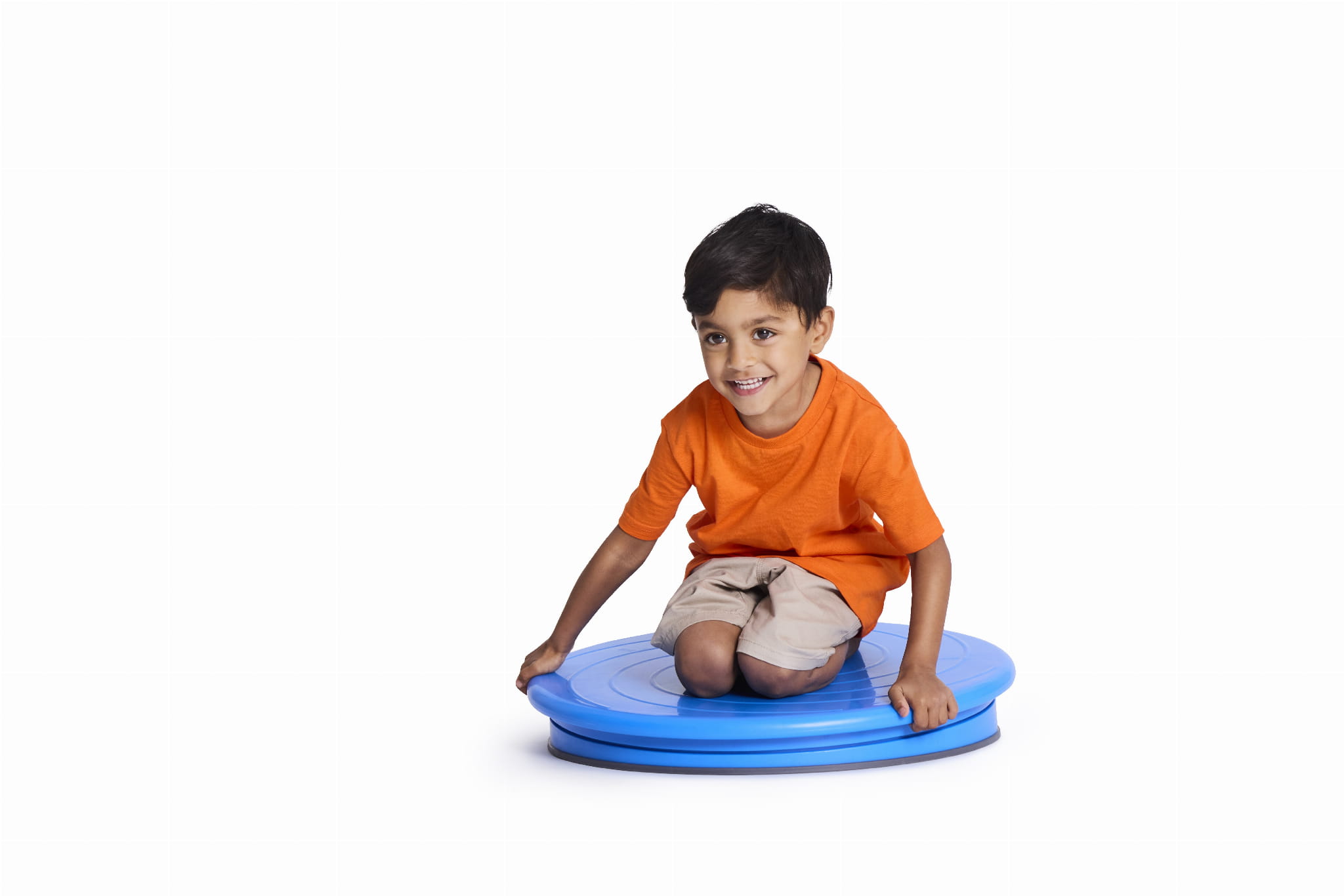 Dysk obrotowy Gonge Floor Spinner ma lekko pochyloną powierzchnię, co pozwala dziecku zwiększyć prędkość obrotową poprzez dostosowanie środka ciężkości poprzez ruch ciała. Zaprojektowano go ze stabilną podstawą, w komplecie z antypoślizgową gumową obręczą i zamontowano na pięciu łożyskach kulkowych, co zapewnia płynny i wydajny obrót.
