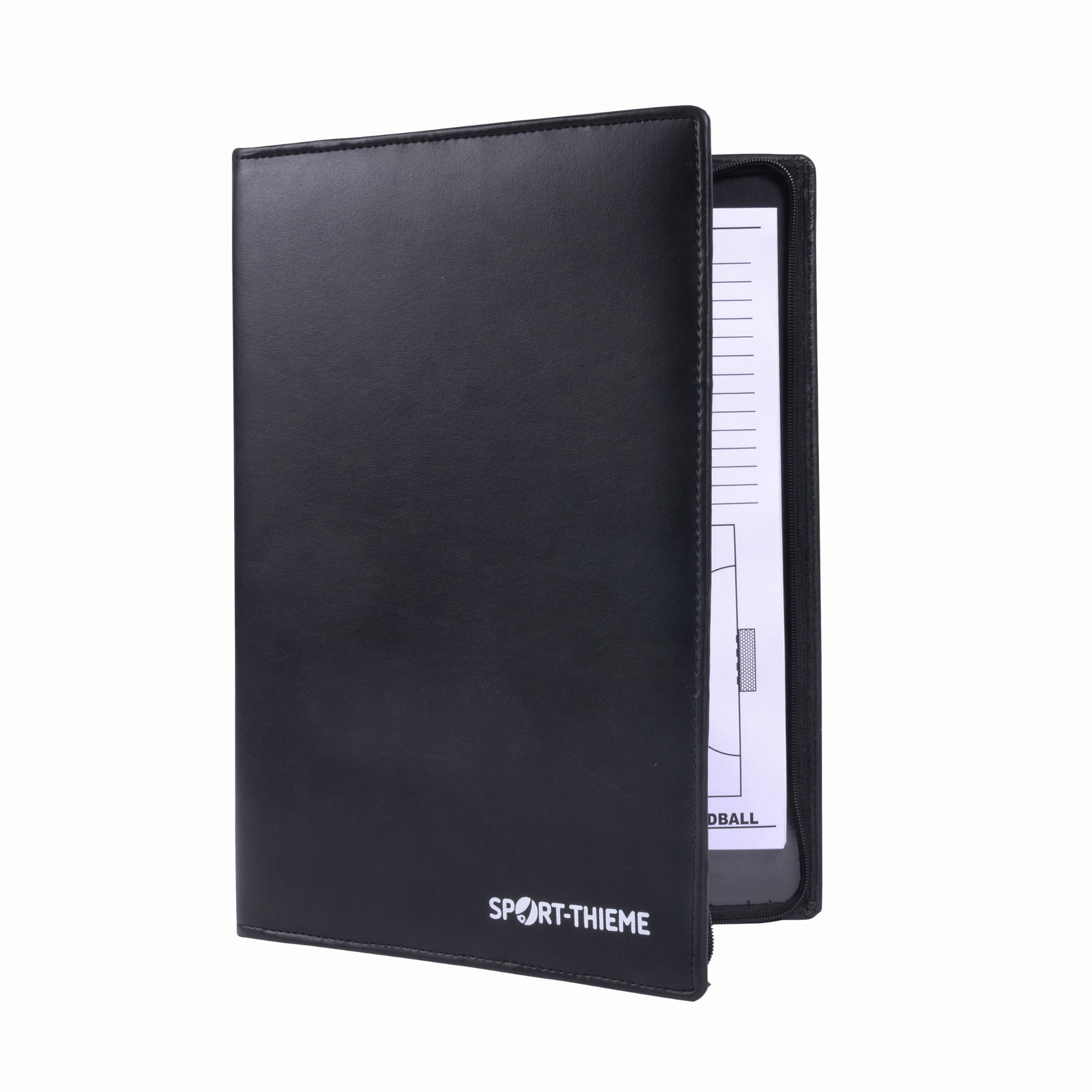 Składana teczka strategiczna Sport-Thieme to praktyczne i niezastąpione narzędzie dla trenerów, menedżerów oraz edukatorów sportowych. Wyposażona w solidny zamek błyskawiczny, zapewnia bezpieczne przechowywanie notatek, schematów i materiałów taktycznych. Elegancka, wyściełana okładka gwarantuje wygodny chwyt i trwałość podczas codziennego użytkowania. Wewnątrz znajduje się magnetyczna tablica z układem boiska, idealna do wizualizacji strategii oraz analiz gry, a także notatnik z arkuszami do zapisu kluczowych obserwacji. Zestaw zawiera kolorowe magnesy symbolizujące zawodników i piłkę, marker ze zmazywalną gąbką oraz długopis, co umożliwia szybkie tworzenie i korygowanie taktyk. Dzięki kompaktowym wymiarom 35 × 25 × 2,5 cm i wadze 0,6 kg teczka doskonale sprawdza się w terenie, na ławce trenerskiej oraz podczas odpraw przedmeczowych. Wykonana z plastiku, metalu i papieru, oferuje pełen zestaw funkcji, które wspierają skuteczne planowanie gry i komunikację z zawodnikami w każdej dyscyplinie sportowej.