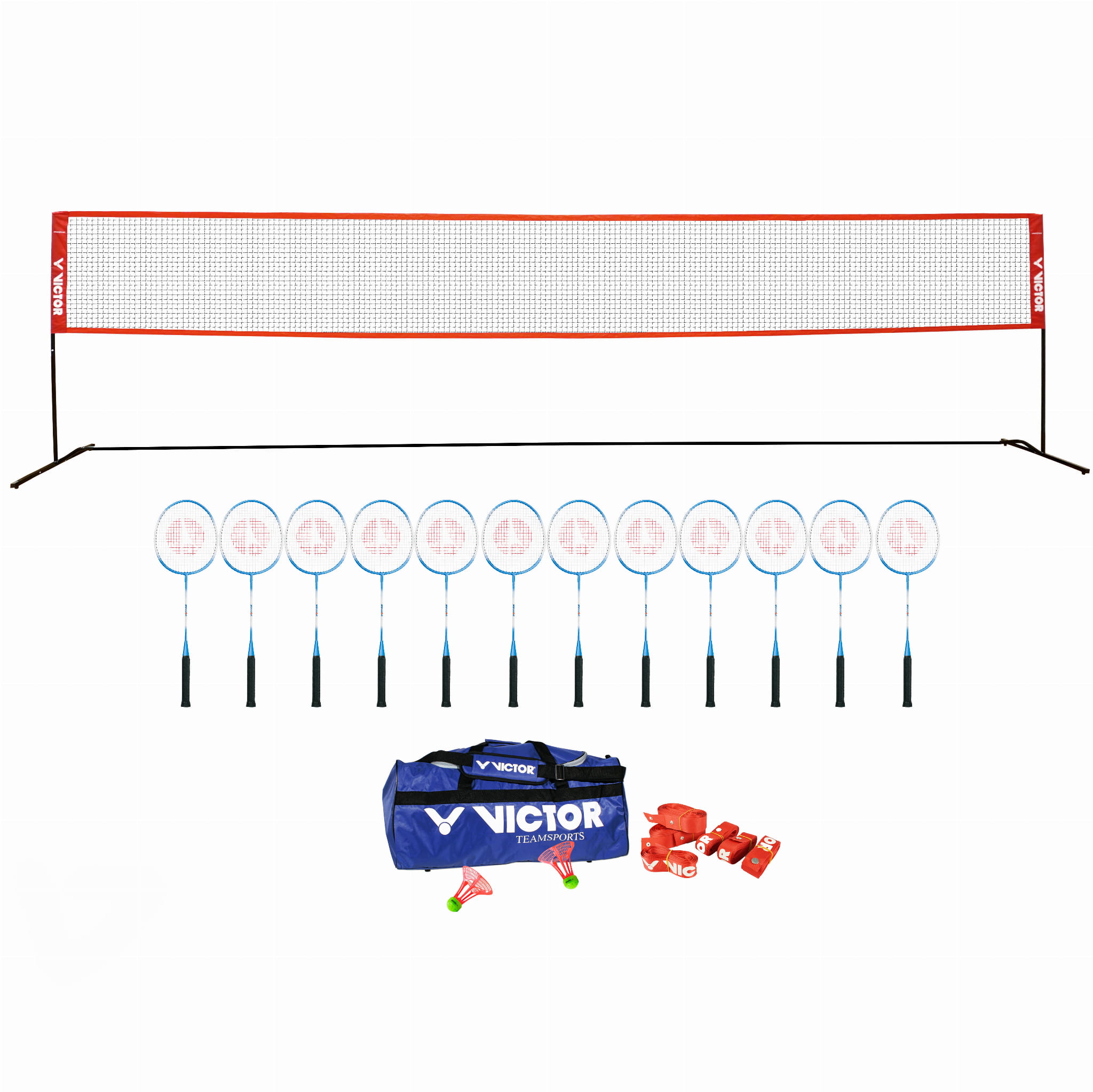 Siatka do badmintona Victor „Premium” nadaje się do użytku wewnętrznego i zewnętrznego, można ją ustawić na dowolnej wysokości i nie wymaga kotew ani kołków. Linie kortu Victor pozwalają szybko wyznaczyć boisko w różnych rozmiarach, dzięki czemu zestaw sprawdzi się zarówno podczas zajęć szkolnych, jak i treningów klubowych.