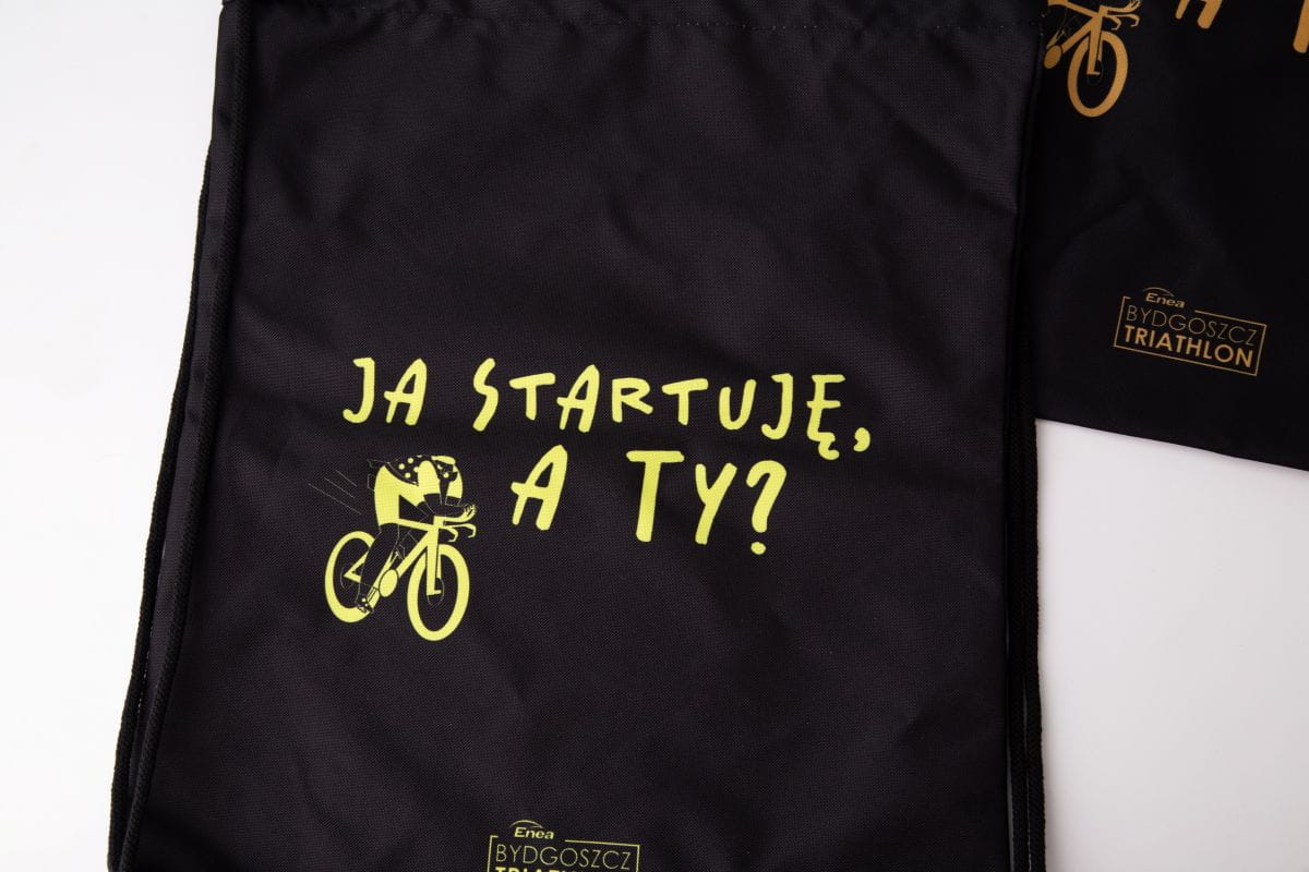 - Oficjalny Gadżet Eventu: Worek z logotypem prestiżowej imprezy Enea Bydgoszcz Triathlon.