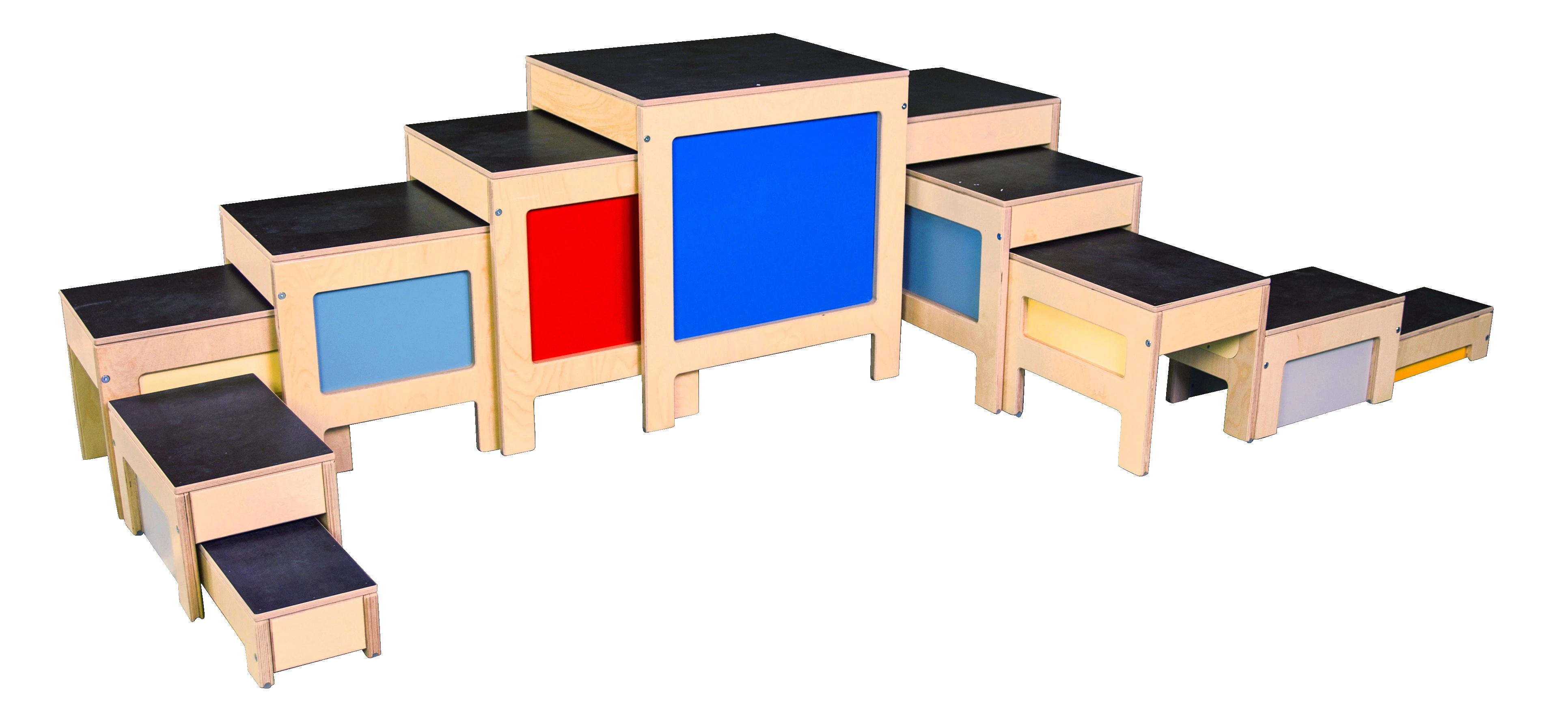 Zestaw schodów Sport-Thieme „Move” to funkcjonalne i wytrzymałe rozwiązanie do ćwiczeń ruchowych, zabawy oraz treningu równowagi dla użytkowników w każdym wieku. Wykonany z solidnego drewna multiplex, gwarantuje trwałość i stabilność nawet przy intensywnym użytkowaniu. Kolorowe boki przyciągają uwagę dzieci, zachęcając je do aktywności fizycznej i kreatywnej zabawy.
