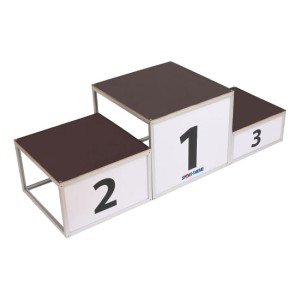 Podium dla zwycięzców Sport-Thieme to elegancka, solidna i odporne na warunki atmosferyczne konstrukcja. To podium zwycięzcy sportowe jest idealne na ceremonię wręczenia nagród po zawodach. Wykonane z aluminiowych rozpórek posiada antypoślizgową podstawę z tektury sitodrukowej. Podstawa składa się z 3 pojedynczych pudeł, które można umieścić jedno w drugim, aby zaoszczędzić miejsce. Podium sportowe z łatwością mieści się w bagażniku i można je zabrać na różnego rodzaju wydarzenia.