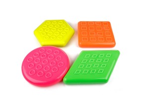 - wymiary: koło o średnicy 25 cm, kwadrat o boku 23 cm, sześciokąt o boku 23 cm, równoległobok 36 x 23 cm