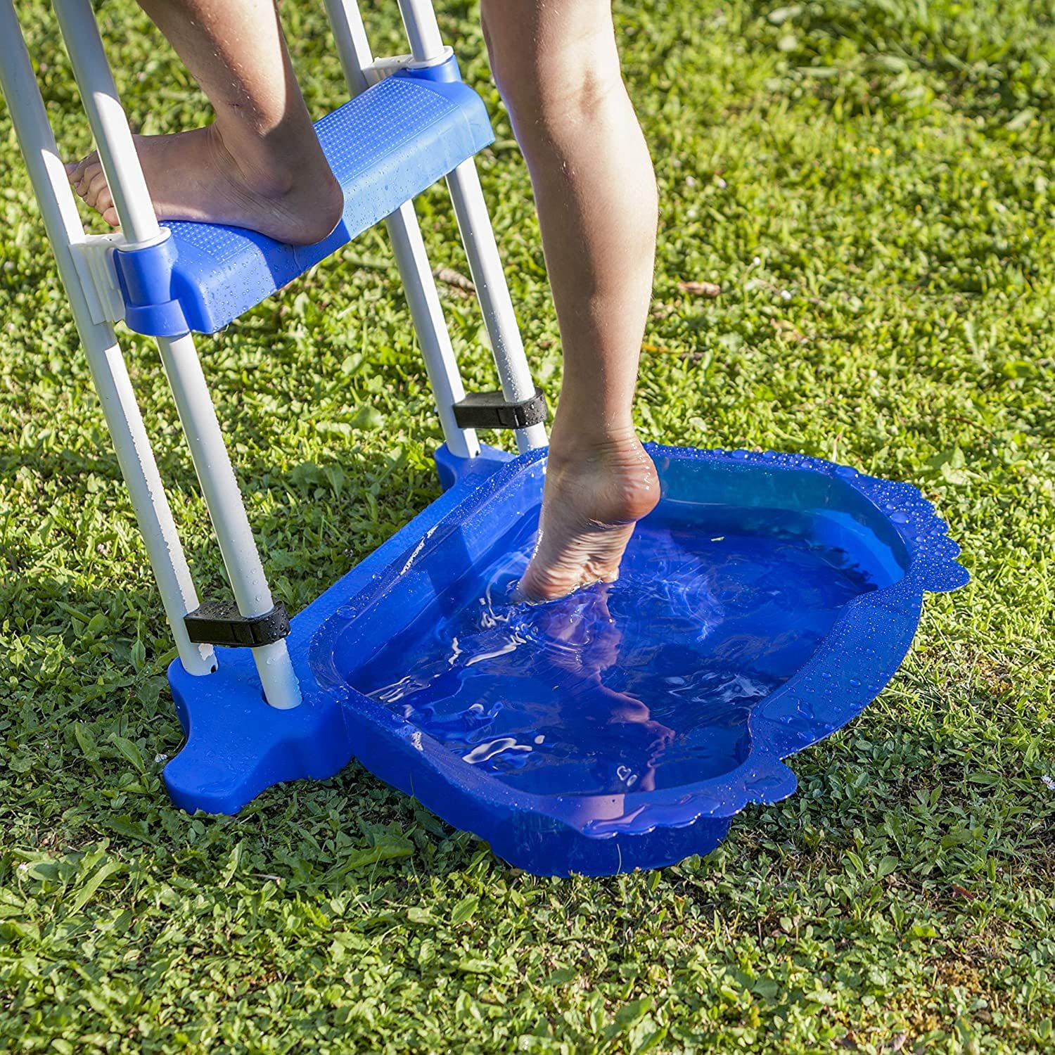 Pozwala opłukać stopy przed wejściem do basenu usuwając powierzchniowy brud. Umywalkę można łatwo połączyć z drabinką basenową.