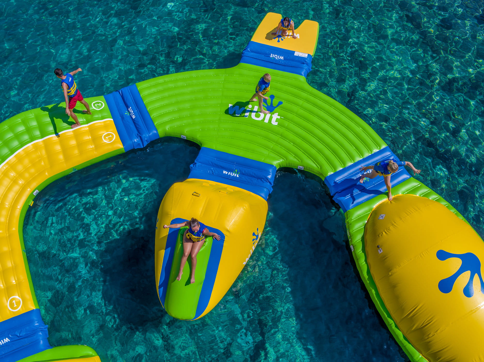 Biegnij, skacz, baw się! WIBIT ŁĄCZNIK TURN to kluczowy element wodnego toru przeszkód, który pozwala na połączenie aż czterech różnych elementów, tworząc ekscytujące i płynne przejścia. Dzięki niemu możesz dodać więcej dynamiki do swojego Parku Zabaw, łącząc np. RodeoSlide, Slope lub inne atrakcje WIBIT!