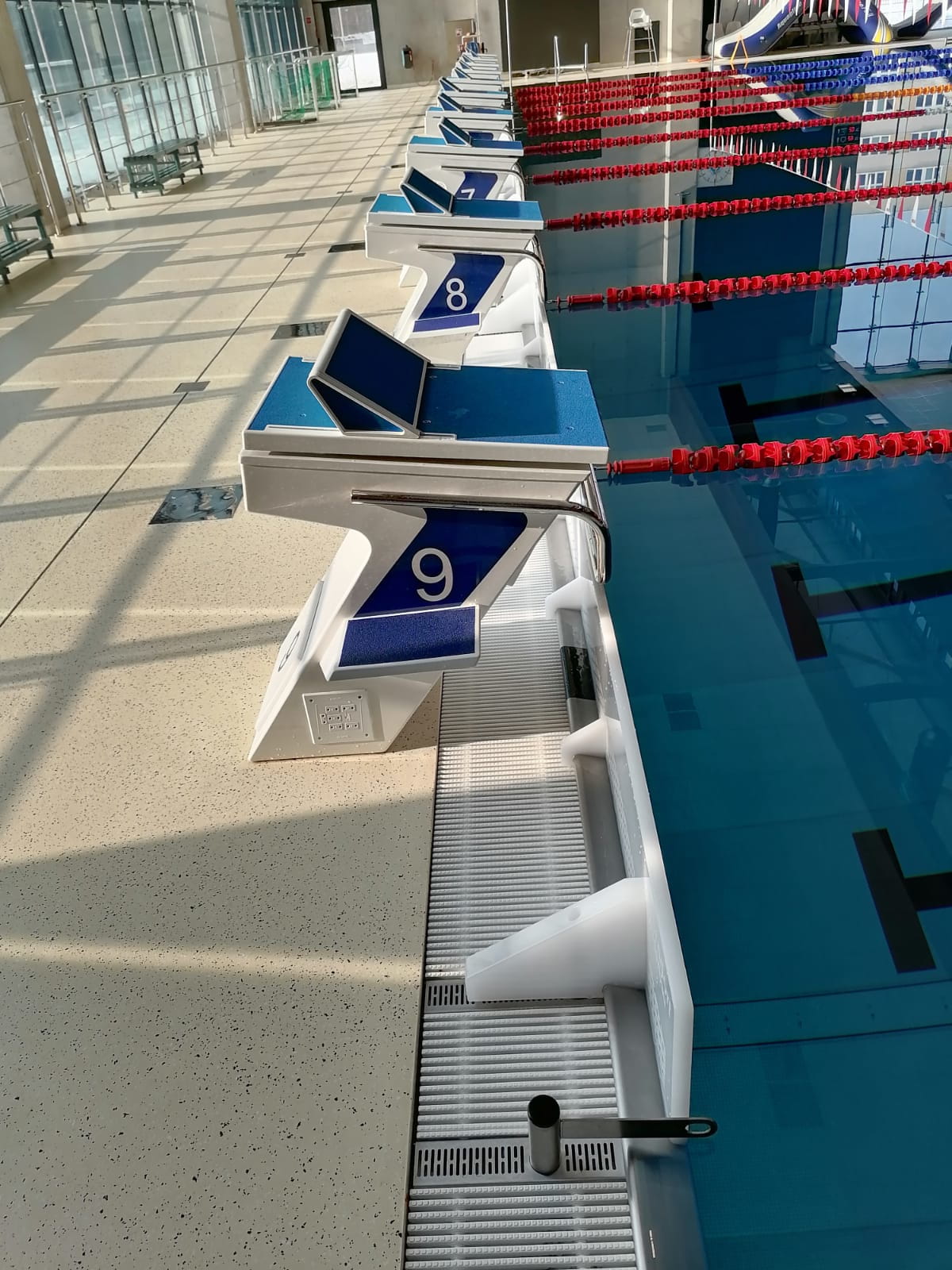 Dodatkowy stopień wejściowy – ułatwia wchodzenie na słupek, zwiększając wygodę dla pływaków.