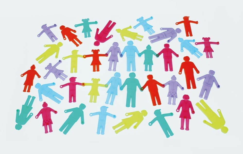 Wykonane z miękkiego silikonu łączące się rękami ludziki składają się z 6 rodzin z których każda ma 6 członków rodziny - każdy wykonany w innym przezroczystym kolorze co sprawia, że każda postać jest zupełnie inna od pozostałych. Postacie obejmują: dziadka i babcię, mamę i tatę oraz dziewczynkę i chłopca. Zestaw ma wiele realistycznych funkcji wykorzystania, postacie mają odpowiednie proporcje, można je wykorzystać podczas zabawy oraz w całym programie nauczania w przedszkolu czy szkole
