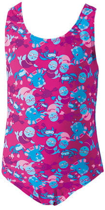 Kostium Miss Zoggy to strój przeznaczony dla dziewczynek w wieku od 1 do 6 lat. Różowa kolorystyka z pewnością zachwyci młode amatorki pływania oraz pozwoli na oswojenie się z wodą. Dzięki atrakcyjnej grafice kostium pozwoli czerpać radość z przebywania w wodzie. Strój został zaprojektowany w taki sposób, aby dobrze przylegał do ciała, a jednocześnie nie krępował ruchów. Z tyłu znajduje się wycięcie w kształcie koła zapewniające swobodę ruchów.