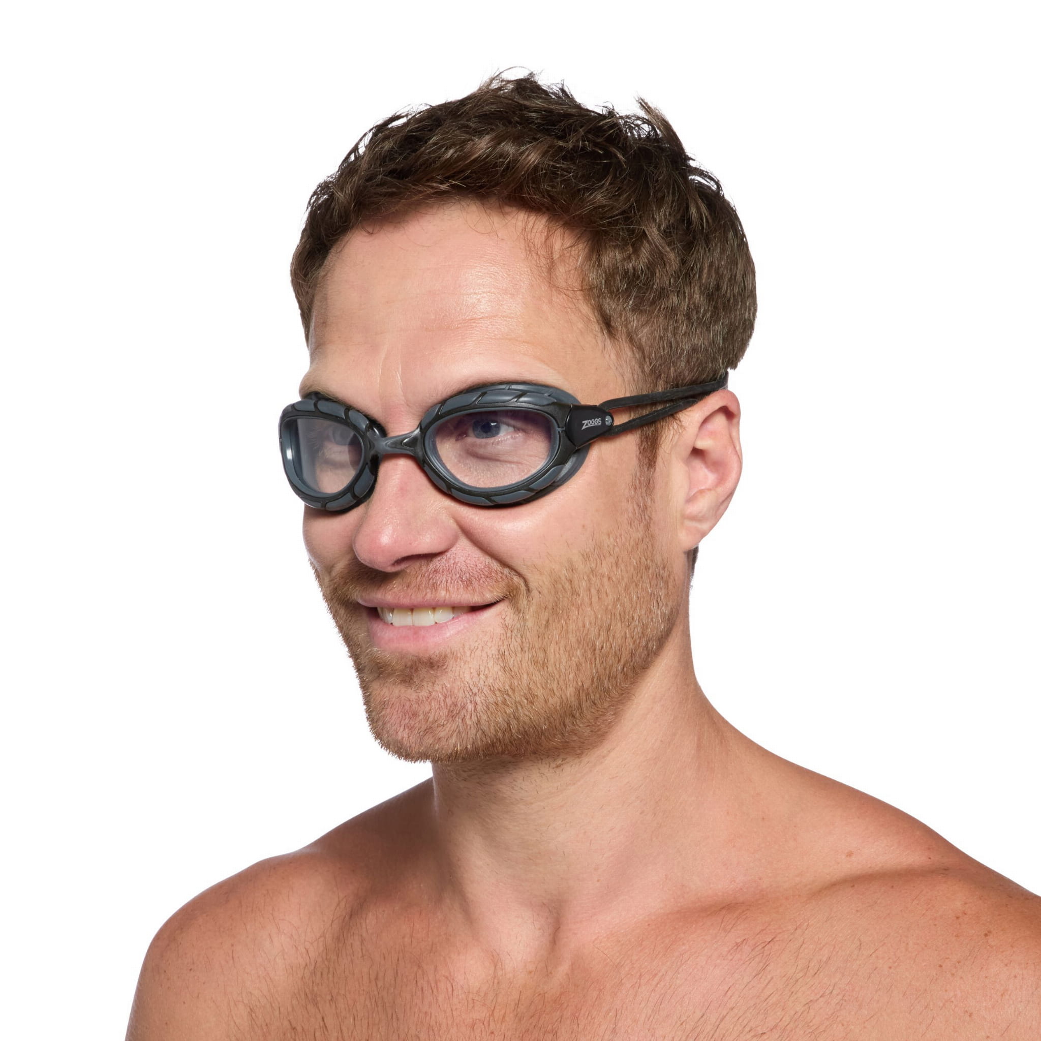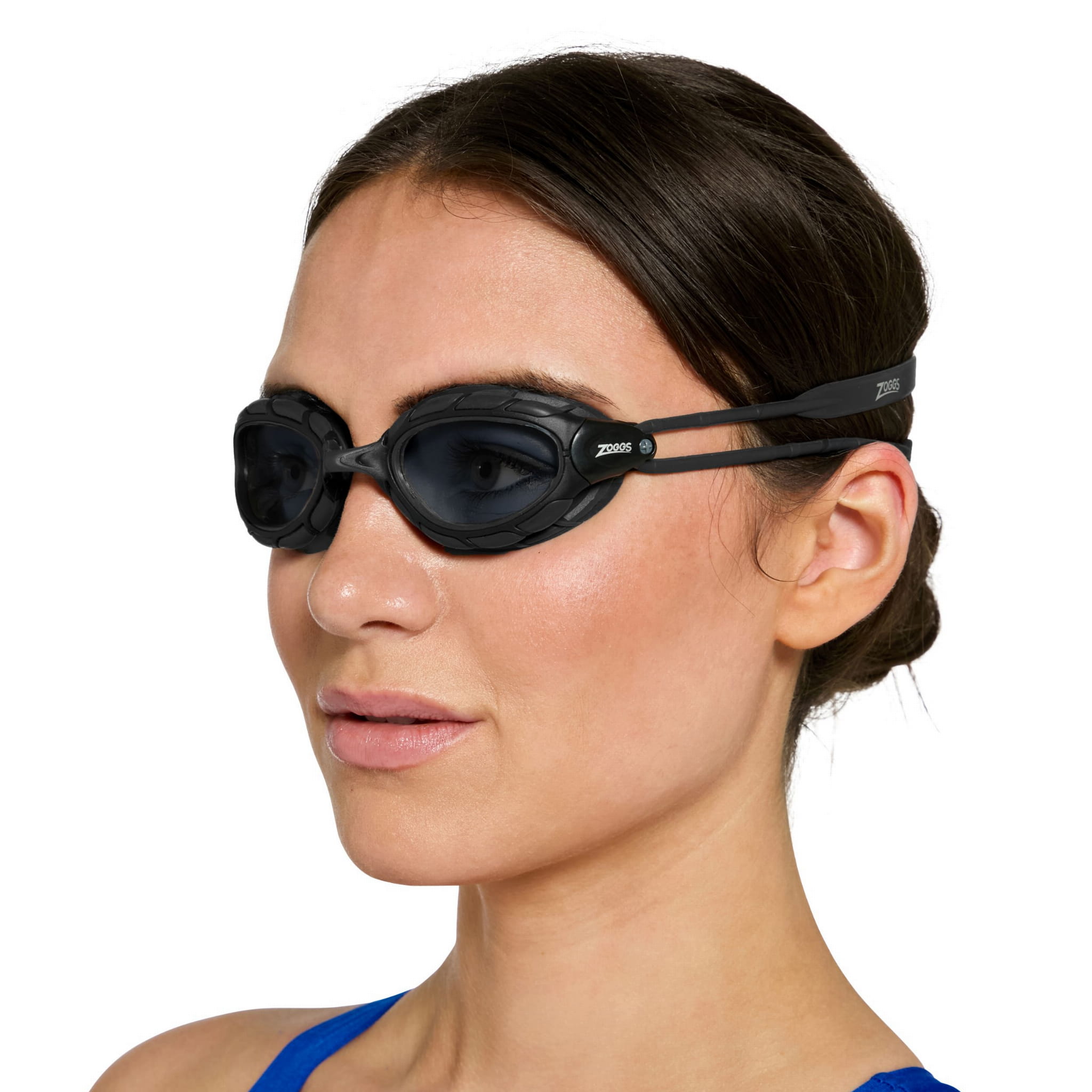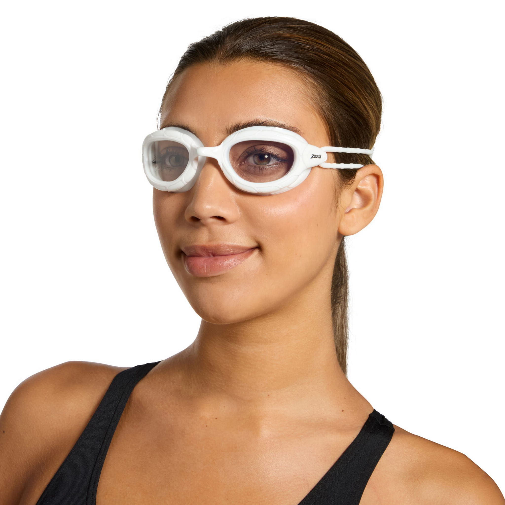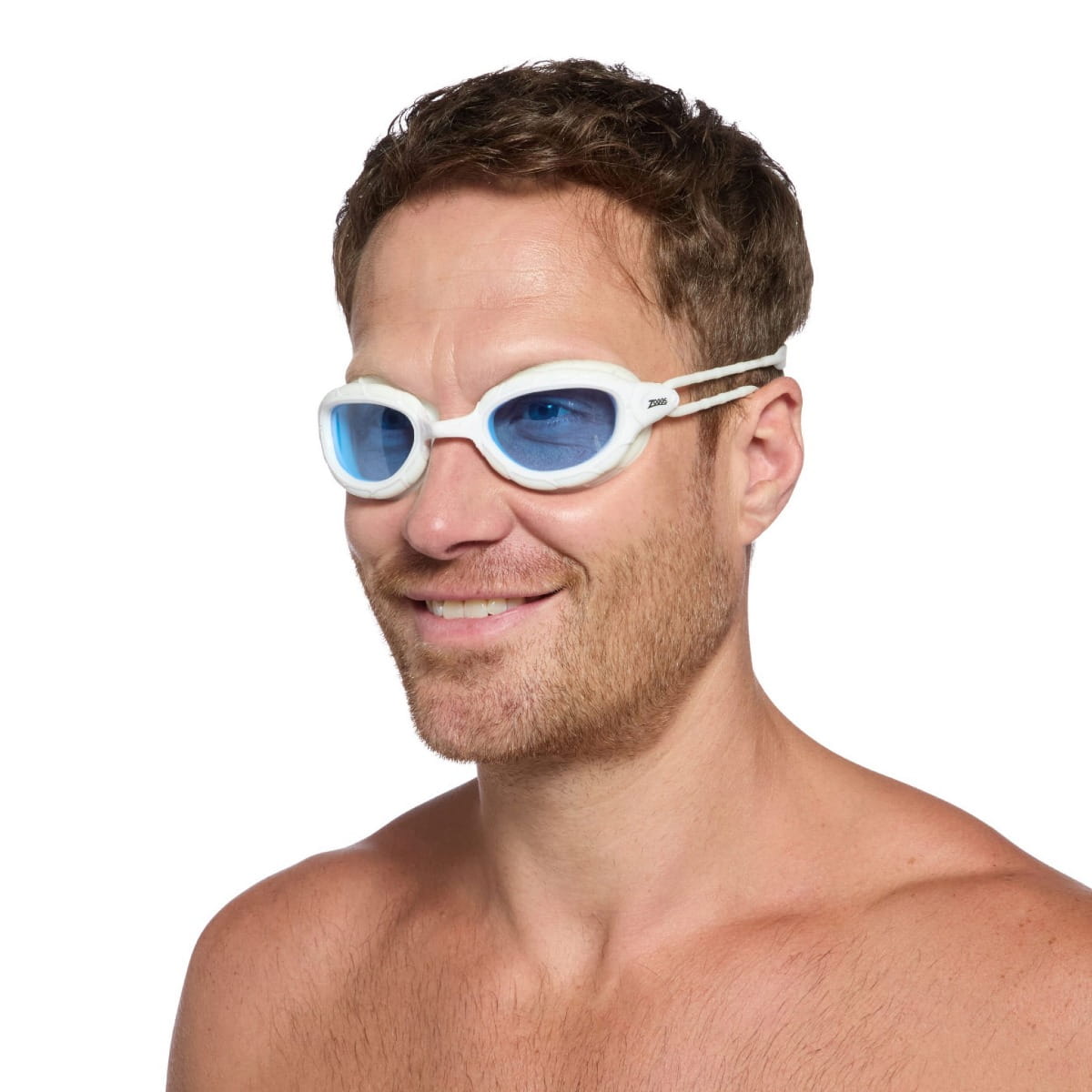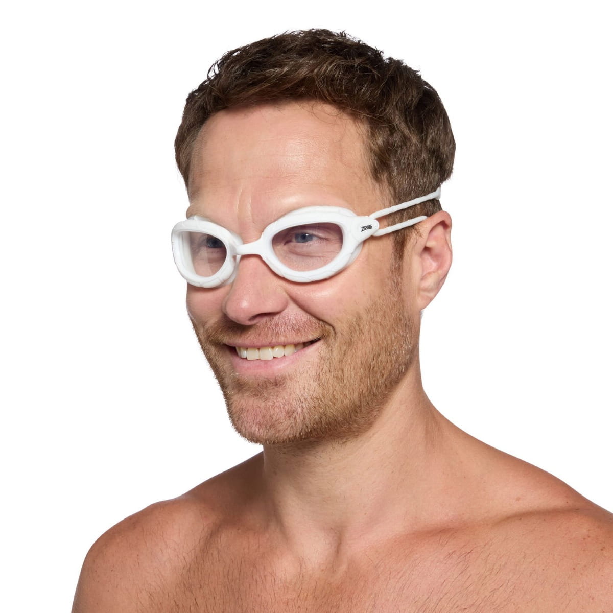 Zoggs Predator wykorzystują technologię CLT, która zapewnia szerokie, 180-stopniowe pole widzenia. Uszczelki Ultra Fit dopasowują się do twarzy, zmniejszając nacisk wokół oczu i zwiększając komfort użytkowania. Powłoka Anti-Fog zapobiega parowaniu, a filtr UV400 chroni oczy. Rozdzielony silikonowy pasek z systemem regulacji gwarantuje stabilność podczas pływania.
