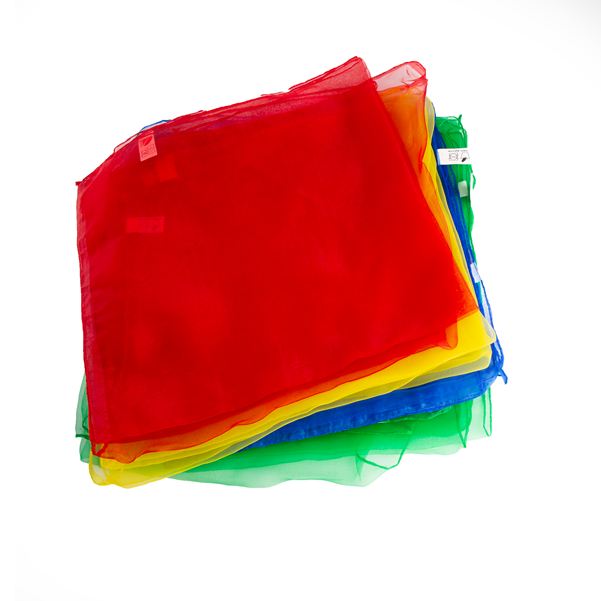 Magiczne chusty wykonane z lekkiego, zwiewnego nylonu w 4 różnych kolorach (żółtym, czerwonym, niebieskim, zielonym). Przeznaczone do gier i zabaw muzyczno-ruchowych, terapii i rehabilitacji. Podobnie jak chusta „spadochron” nadają się do przedszkoli i szkół oraz do zabaw w domu. Do wykorzystania podczas zajęć rytmiki, zabaw indywidualnych i grupowych.